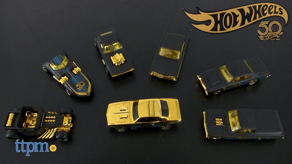 Hot Wheels cars have been around for the past 50 years, and this makes the 50th-anniversary black and gold a unique set to acquire. The collection contains vehicles such as the Dodge Impala, Dodge Dart, Twin Mill, and Bone Shaker Car among many other classic models.