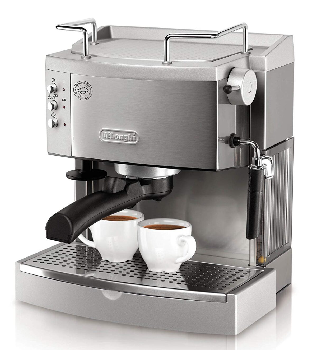 This device is not so good like the others in our list, it has less durable construction, but it is still a solid pick for the budget under $200. If you buy this device you will get a standard 15bar Italian pump, slide-in portafilter easy for use, a swivel wand, and a small cup warmer for pre-heating of the cups. It has many plastic parts instead of stainless steel and it is slimmer than the DeLonghi model.
