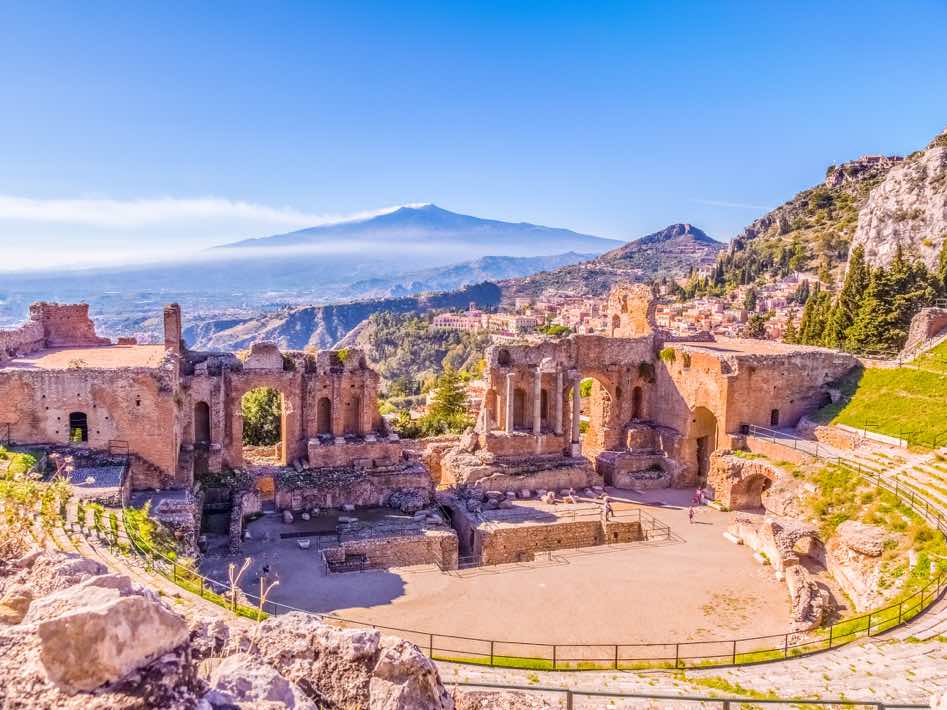 Taormina: Before Etna’s attentive gaze, Taormina emerges splendidly to delight the traveler who visits her. It is not for less: its Greek theater is a real pleasure for the senses when contemplating the bay of Naxos from its stands.