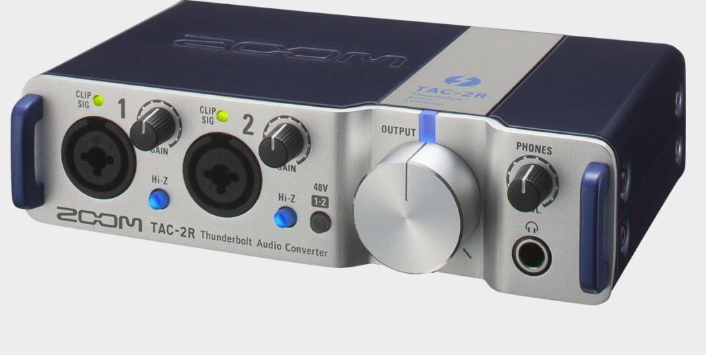 Next up we have the Zoom TAC-2R interface. This one, like the two previous ones, is also directed towards portability with its rugged and compact design. The TAC-2R also features dedicated 5-pin MIDI I/O, something the previous two do not have. Latency figures are pretty impressive, coming in at 4.17 ms round trip at 44.1 kHz with a 64 sample buffer. There is also a direct monitoring switch on the rear panel that toggles between MONO, STEREO and OFF. All things said, the Zoom TAC-2R provides great value for its cost and makes the perfect low-budget interface.