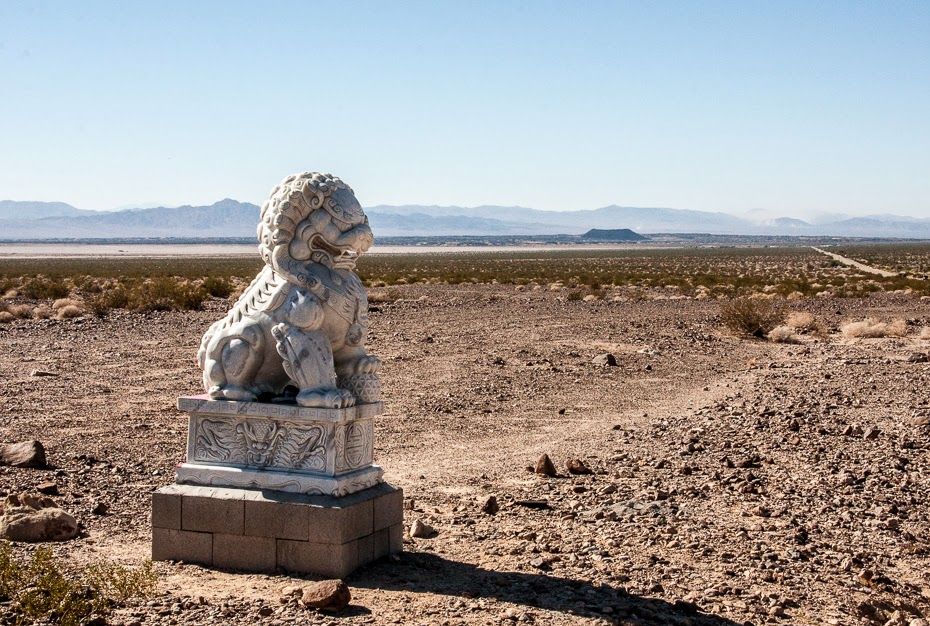 You can find the pair of the white marble lions between Amboy Road and Kelbaker Road. While driving on Amboy Road, you will spot a real estate sign from which you can see the male lion. You might also see the female lion from this same position if not, move a quarter-mile further east and you can see it from the roadside.