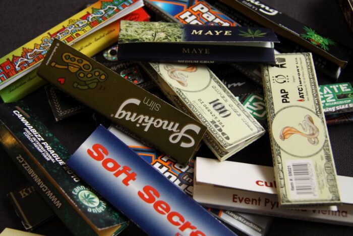 Rolling papers are great for rolling both marijuana and tobacco. They are thin cigarette-sized paper sheets that come in a small cardboard pack and are often sold in smoke shops, weed dispensaries, and even gas stations. Rolling papers are often made from wood or plant fibers. Some of the plants used include sisal, rice straw, hemp, and even flax.