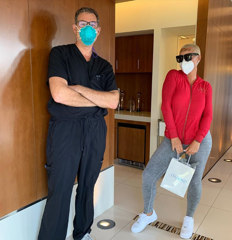 Amber Rose (36) is not about to let herself go during the lockdown. The model went to celebrity beloved Dr. Jason Diamond to get her Botox shots. “Thank you @drjasondiamond Ur the best! My forehead is so Smooth!”, Rose captioned a photo with the doctor, both wearing face masks.