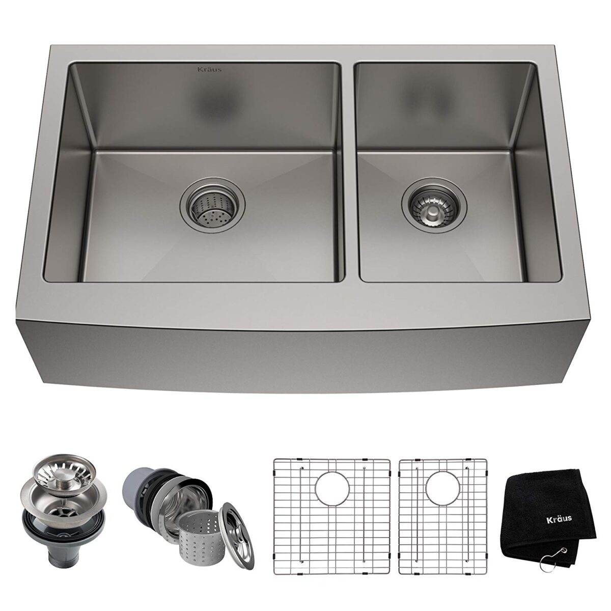 A farmhouse sink form Kraus, KHF203-36 is one that is built to last. The quality and thickness of the steel on this sink make this one a pretty durable piece of kitchen appliance. This sink has channels which guide water in order to avoid pooling and, also, it has a rear drain. This is more than enough to ensure that you don’t have flooding on your hand. Under the faucet, you have more than enough space for dish cleaning, which offers you the possibility to enjoy some additional comfort.