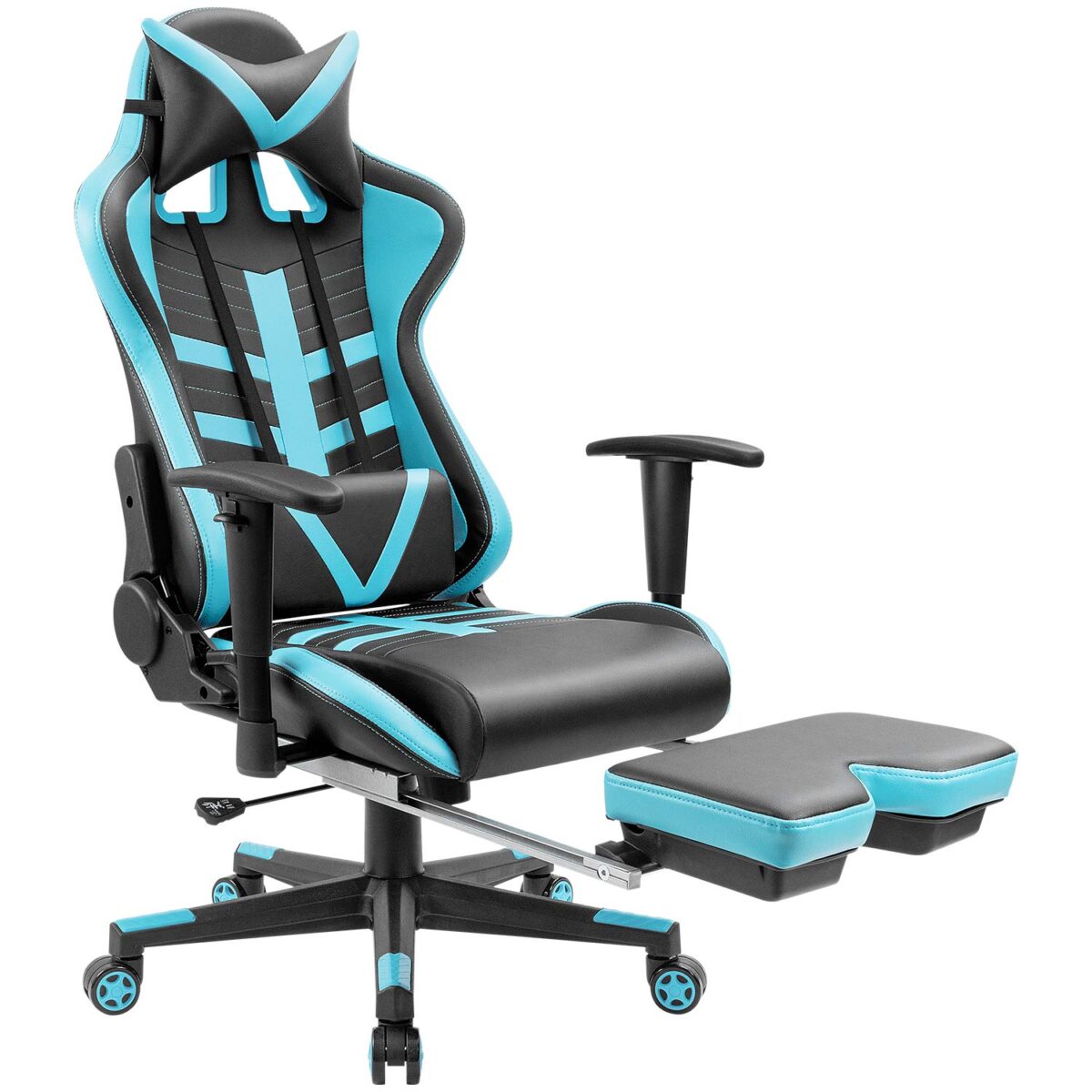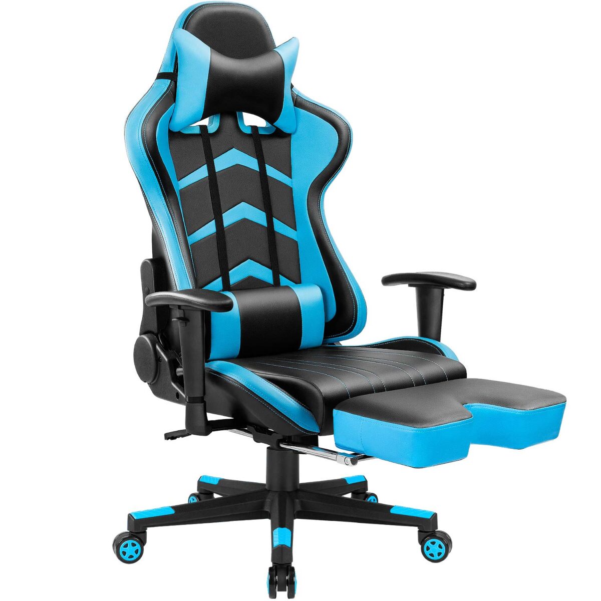 Another racing style gaming chair that comes to us from Homall. This one is made of 8mm thick steel frame and faux leather. In terms of features, it is quite similar to the previous product on our list by Homall. There are 360° swivel rotation, headrest and lumbar supporting pillows as well as an adjustable backrest, footrest until you can’t adjust the armrests, which some gamers may consider as a disadvantage.