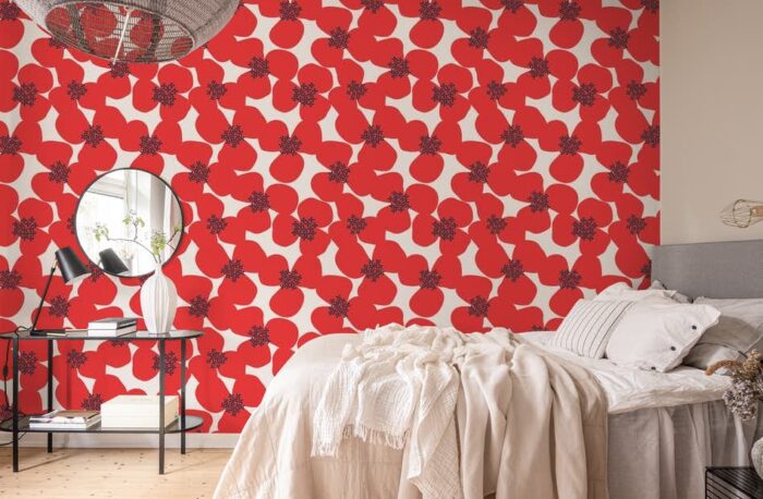 For those who are a bit eccentric and like dramatic elements in the design, wallpapers with bulky red poppy flowers are the right thing. With these wallpapers, you will present your style and yourself in a very interesting way – and you can easily emphasize them with small details in the room decor.