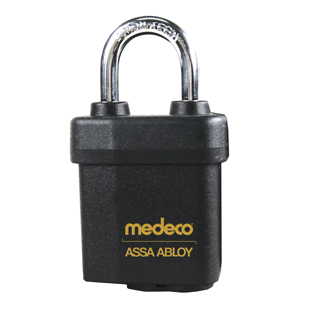 Because the cylinder has hardened stainless steel inserts, this model from Medeco is one of the best padlocks out there.