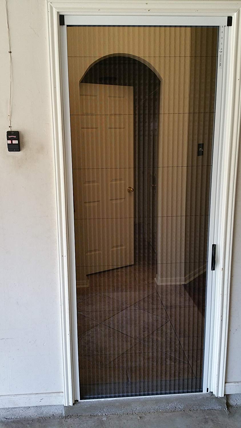 This model is specifically made for 32 inches to 36-inch inswing hinged doorways. The standard size eliminates the need for any cutting on-site and the whole unit can be installed with just a power drill and a screwdriver, making them perfect afternoon project for DIY-oriented homeowners. The retraction is automatic, at the press of a button, and the movement is very smooth. The screen retracts side to side and the whole things weigh just two pounds, so you won’t need anyone helping you with the installation. They only come in white, but that color goes with almost anything.