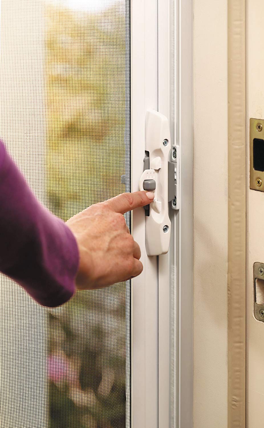 This model is similar to the one made by R. Laurence but designed specifically for wide French doors. The opening can be up to 38 inches and it can be fitted on both in and out-swinging doors. The model is made of aluminum, and the screen is fiberglass wire. The cartridge containing the scree can be replaced easily in case it gets damaged or worn out. One of the best features is that this model can be mounted on either inside or outside of the doorway, so it is very flexible. It can be cut to size during the installation on site.