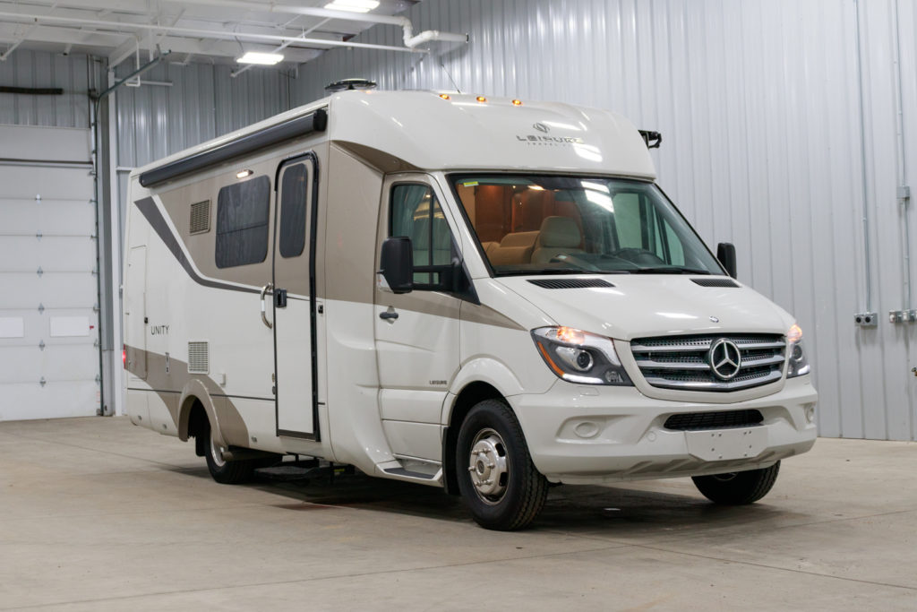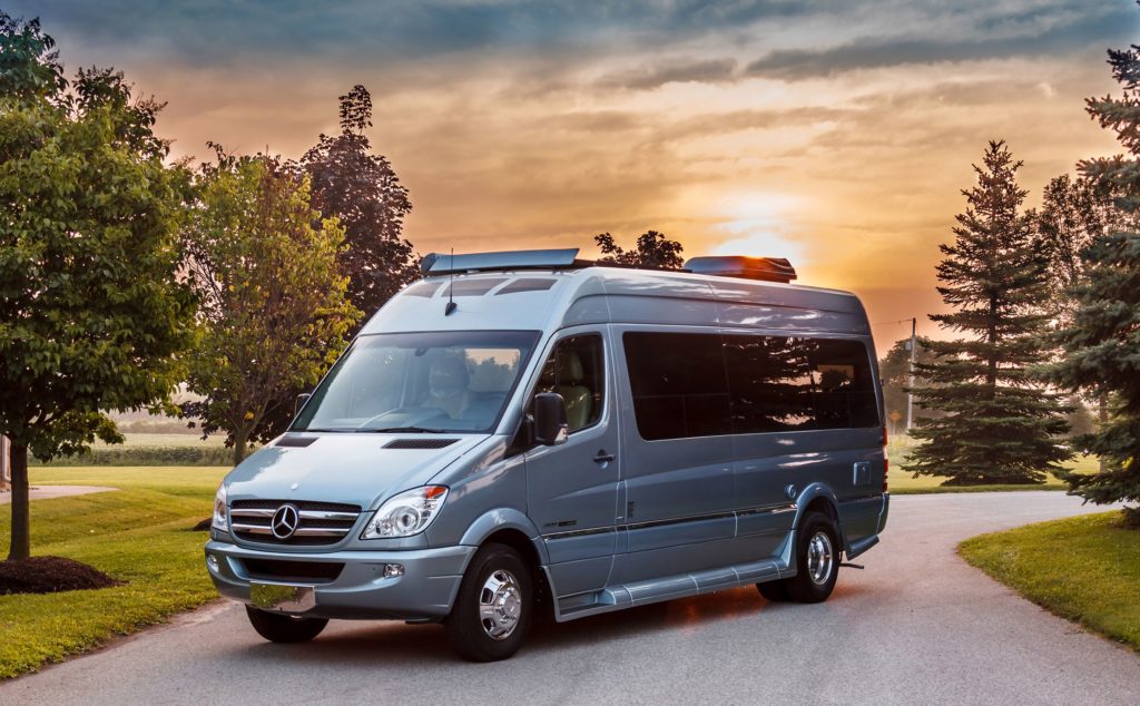 These classic RVs, made by the Mercedes-Benz Sprinter base, will give you everything you expect on a trip. It’s provided with in-floor heating and some really cool-looking, strong frameless windows. Oh, and one more cool thing – you can choose your RV color from a color specter (White, Silver Ice, Champagne Pearl and Charcoal Gray), but you also get to choose the color and fabrics for some inner details like leatherette, cabinetry and upholstery.