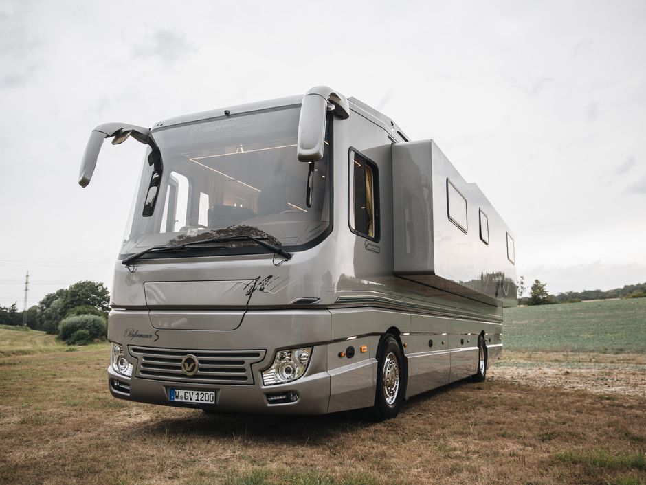 The Volkner Mobil Performance S is a 12-meter-long vehicle that has a luxurious interior and also allows you to take a car with you, thanks to a specially designed slot. And it’s not only impressive on the outside – its interior also exhibits an ostentatious luxury with quality furniture and perfectly separated room sections.