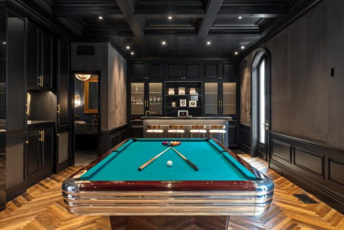 Alternatively, you can use chairs instead of armchairs. This is especially true if your bar also has a bar counter that will look better with bar stools on high legs.