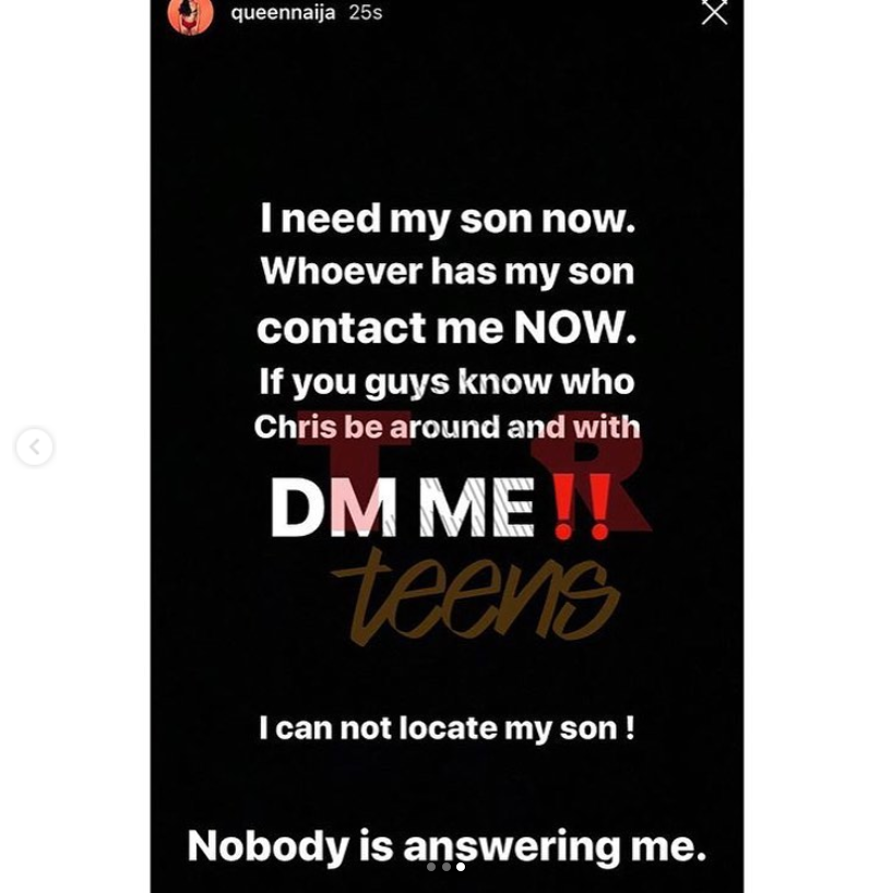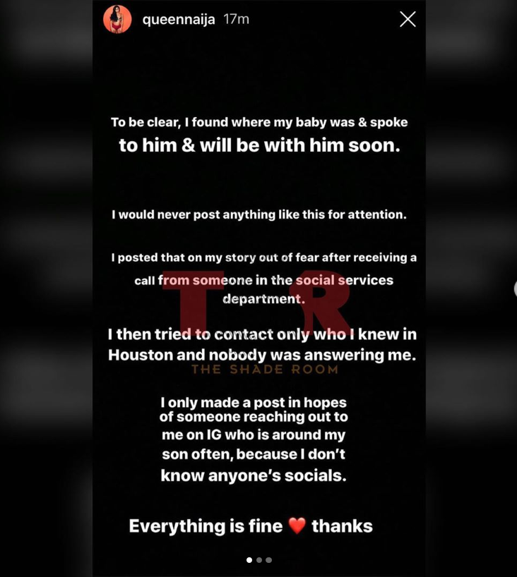 Queen Naija later was able to locate her son presumably with the social services and thanked everyone for their help.