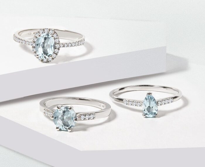 And when you combine the color of these diamonds with the color of rose gold, it makes for a bewitching combination. Or for lovers of bright colors like yellow or light blue, there is the unmissable combination of yellow gold with citrines or aquamarines. Complement them with some dainty diamonds in a halo design around the central gemstone, or set them into the band of the ring and you’ll have yourself a very unique design.