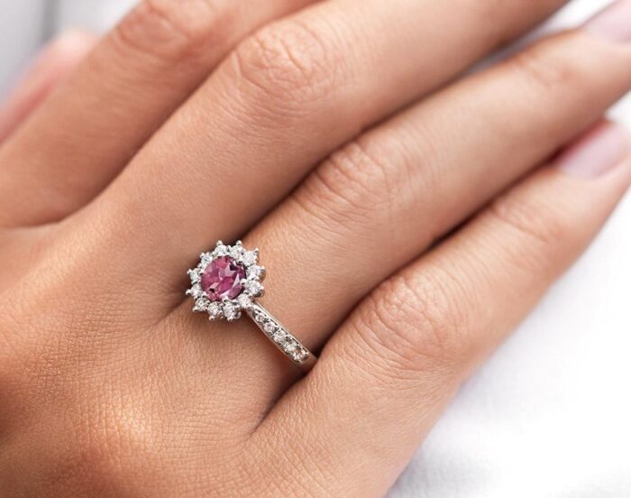 A touch of romance: an engagement ring with a pink gemstone