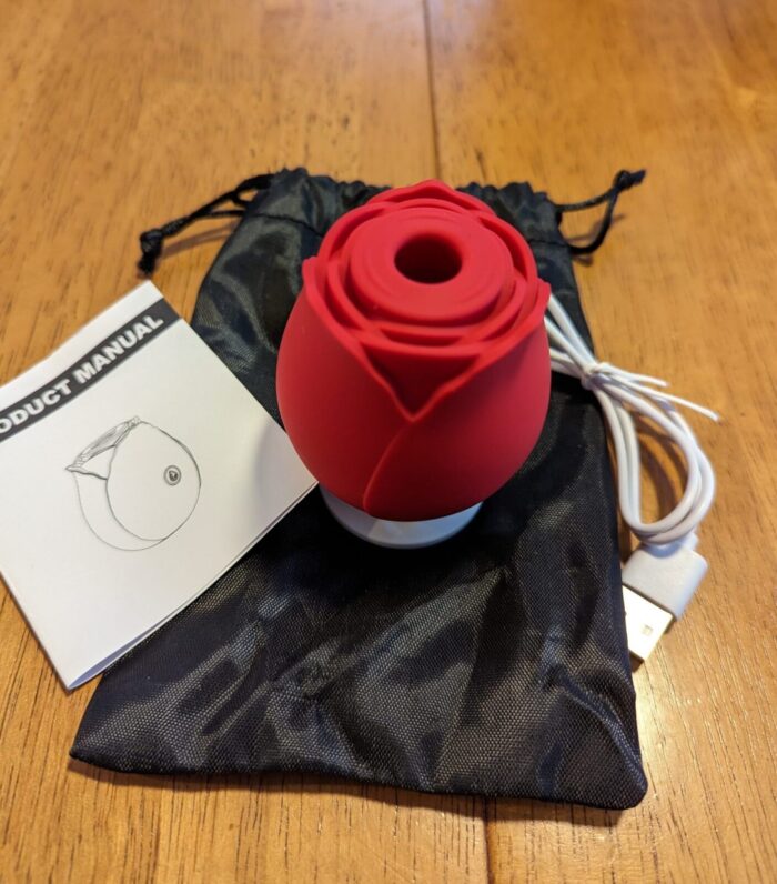 Make sure you fully charge the Rose toy before using it, even if it still has power to work. Because you don’t know how long you’ll be using it, it’s a bummer if it runs out of juice and stops working in the middle of use. Here’s a little trick to tell if it needs charging: put your finger in its sucking mouth and feel the suction, if the suction isn’t as strong as it was before, it’s not getting enough power.