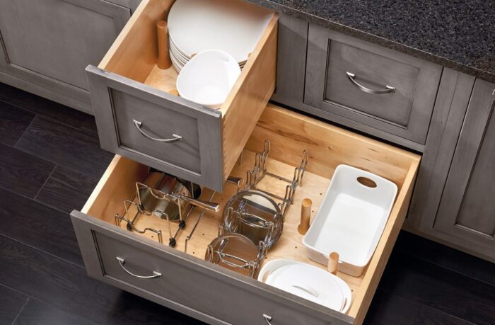 If you have more drawers than the cabinets and you place all the items in your drawers rather than upper cabinetry, you may need pegs. These items help you to keep your drawers organized and clean. The advantage of having a peg system in your drawers is that you can always adjust them according to your needs. This way, you will be able to keep your bowls and plates in one place without allowing them to slide around.