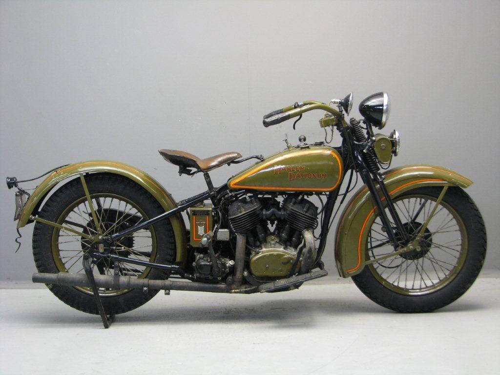 1932VL: This bike was fitted with a 74 cubic, a stand-by engine which rates 28hp, and was capable of 90 miles per hour. It had balloon tires, knockout axles, a lower seating position, crossover brake mechanism, an air filter that looks like an air dryer, teardrop gas tank, the front brake
