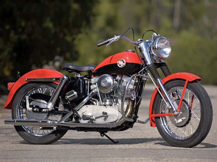1952K: Fitted with 750ccs, this bike was the forerunner to the Sportster. It was the only bike approved by insurance companies because it wouldn’t go fast enough to cause accidents.