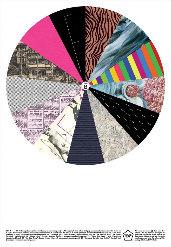 I was thinking about how expensive this would be if it was an LP instead of a paper compilation. Between mailing out the copies, and the print run, which is now up to 800 copies, the pressing, the everything, I think it would probably cost 7 to 8 times as much to have done this via vinyl. Which, needless to say, is super prohibitive without incredible amounts of FACTOR funding and that kind of thing. With these bands, clearly the majority of them are not bands that are getting FACTOR funding, or who even really believe in dancing with the Canadian music industry.