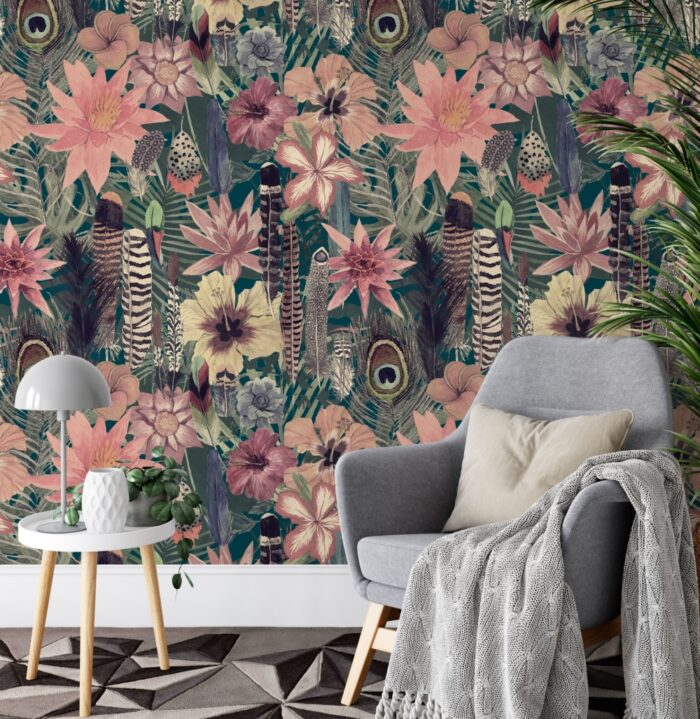 Bold wallpaper is the latest decor trend and looks great on every wall of your home. For example dark colored wallpaper with bold prints will look good in all bright rooms. You can create a feature wall by adding a wallpaper in the living room or bedroom.