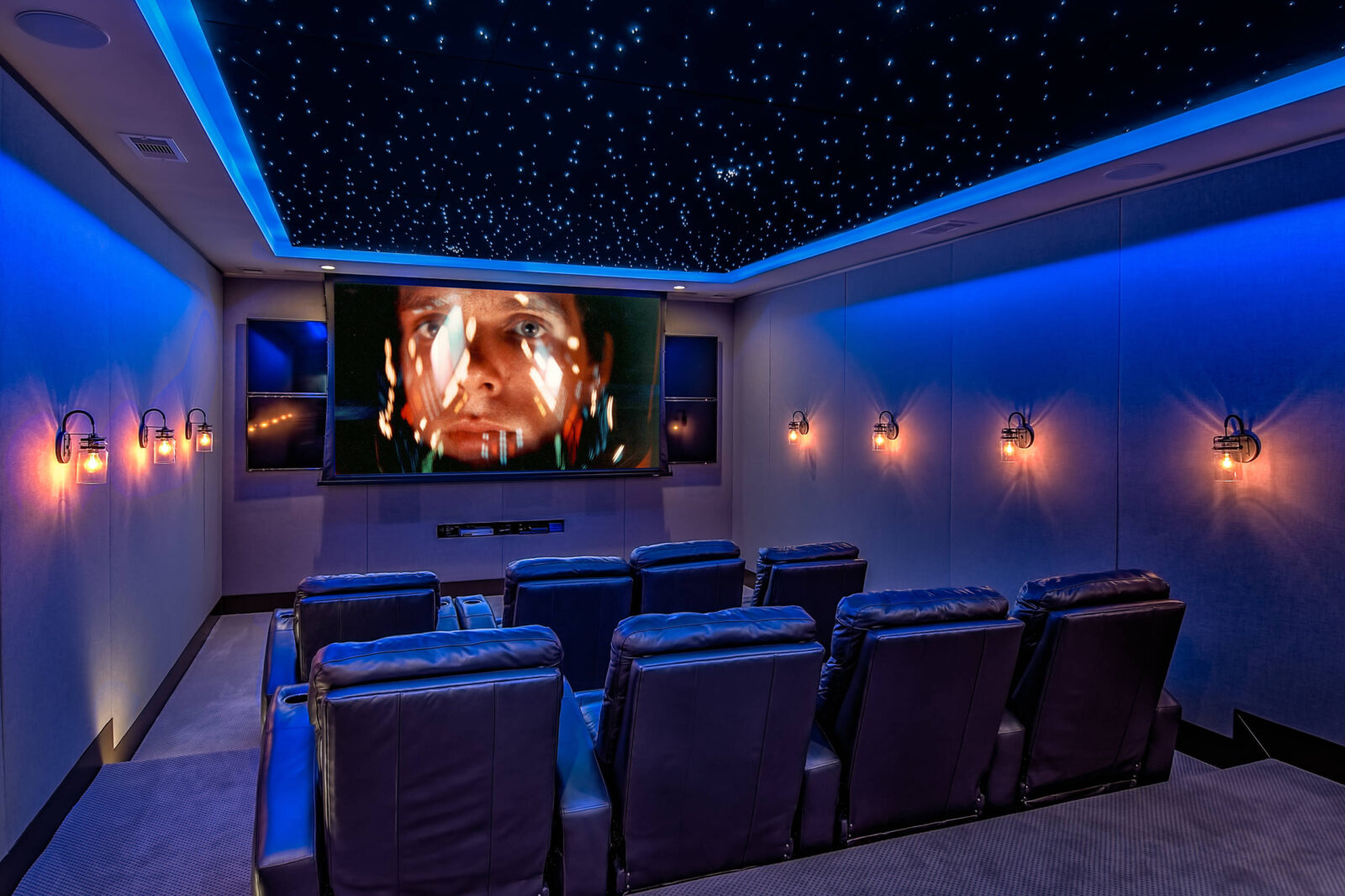 You can even install some recessed lights or wall sconces above seating areas too; this type of lighting creates a more intimate environment for watching movies and makes people feel like they’re really “in” the movie (without using expensive surround sound systems).