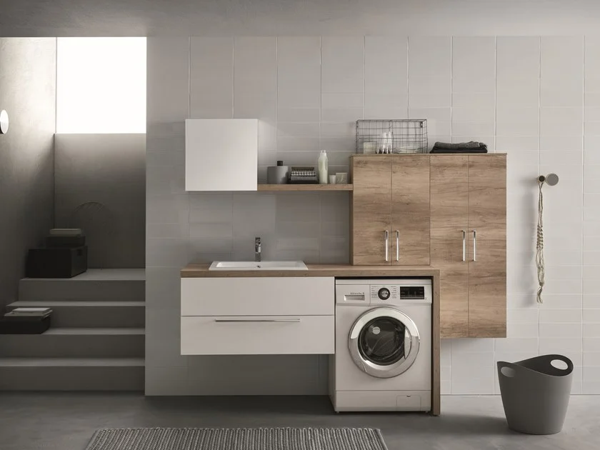 - For comfortable use of the sink and washing machine, it is best to buy a washing machine with a width of about 40 cm and a sink with a width of 50 cm.