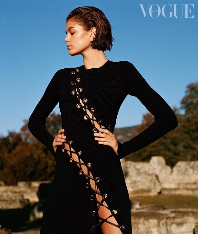In one shot, Kaia is seen in front of a staircase wearing a cast covering part of her upper arm and wrist. The second image featured an X-ray showing a broken wrist.