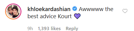 The post gathered 1.3 million likes and 4,500 people took the time to comment including Kourtney’s sister Khloe who chimed in with a heartfelt reply.