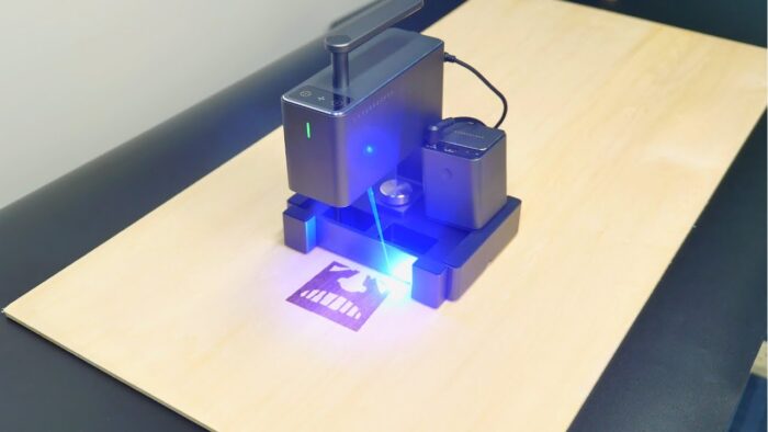 Laser Cutting Machine Wood (Laser Packer 2) has a modestly sized, battery-powered laser engraver whose creator claims it can operate for up to 200 minutes without a mains supply.