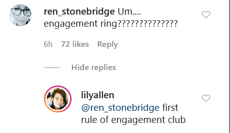 It seems like Lily Allen confirmed her engagement with her partner David Harbour. Lily shared an Instagram photo showing off her abs, but accidentally (or maybe not?) gave a glimpse of the diamond ring.