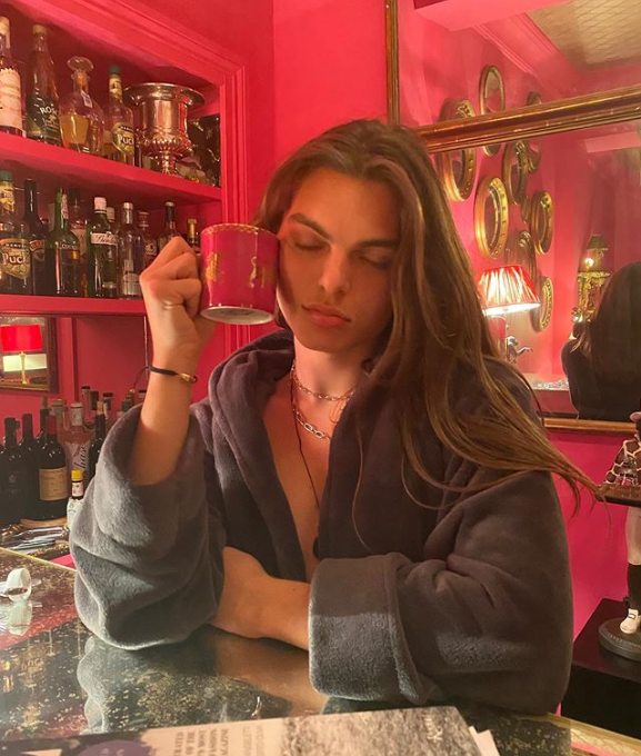 Liz Hurley’s son Damian turns 18 today and is spending his birthday in isolation. Last night he shared a picture of himself sitting at home wearing a dressing gown and sipping a hot drink. He captions the photo: “Isolation drastically altered the plans for my last night as a minor”.