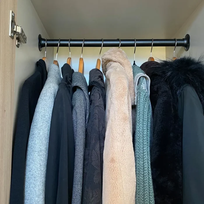 Heavy coats need adequate support when they’re hung in the closet. Wide non-slip coat hangers specifically for the task will ensure the shoulders don’t stretch over time.