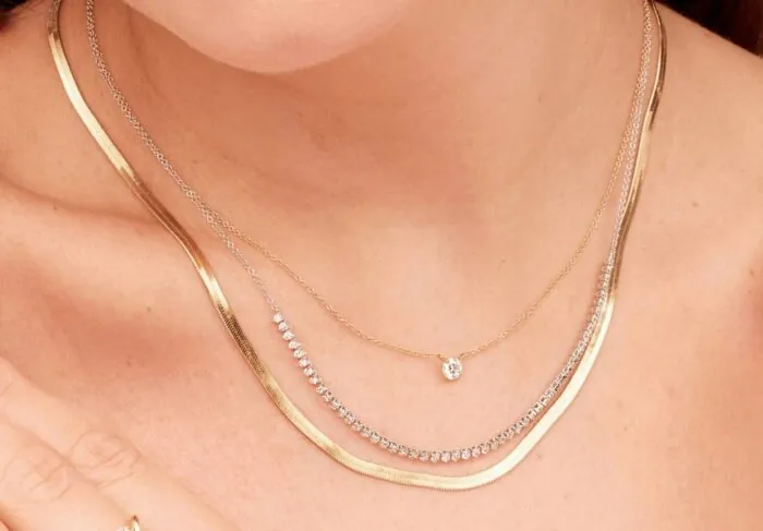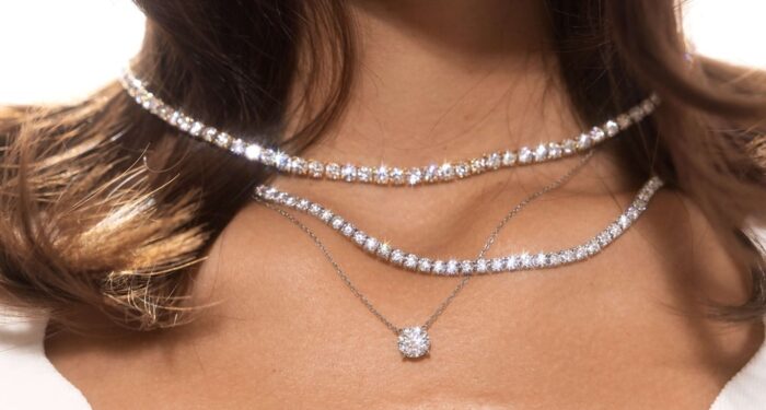 While a tennis necklace can be worn alone, it also works within layered styling when done with control. The key is to maintain separation between pieces. A shorter chain or pendant can sit above the necklace, creating depth without overcrowding the neckline.