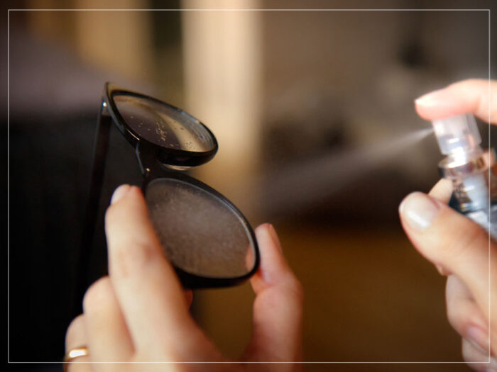 You shouldn’t clean your glasses with Windex, vinegar, rubbing alcohol, or any other type of household cleaner.