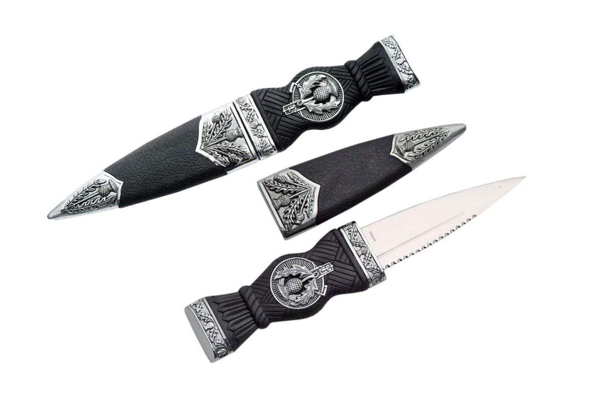 It is a knife that is kept in the hose. The tradition is that when you visit someone’s house, you reveal the weapon and tuck it into your hose. It means you are a friend and do not want to attack anybody. Remember, only the outer part (handle) of the knife should be visible. If you are wearing a kilt on your wedding, then purchase a Sgian Dubh that has some gems on the handle.