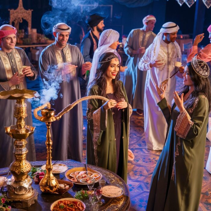 Flowy dresses, harem pants, turbans, and headscarves. These outfits add to the exotic atmosphere and help your guests get into character. Provide accessories like bangles and necklaces to complete the look.
