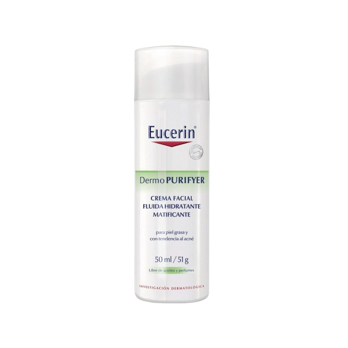Eucerin DermoPURIFYER Moisturizing Day Cream is an oil-in-water (O / W) emulsion without oils and perfumes for oily, problematic and acne-prone type. Its unique combination of anti-inflammatory Licochalcone A, antibacterial decanol and carnitine, for the regulation of sebum, effectively acts on problematic, so that the particles that absorb sebum, visibly clean pores and make it matte, making it ideal daycare and makeup base.