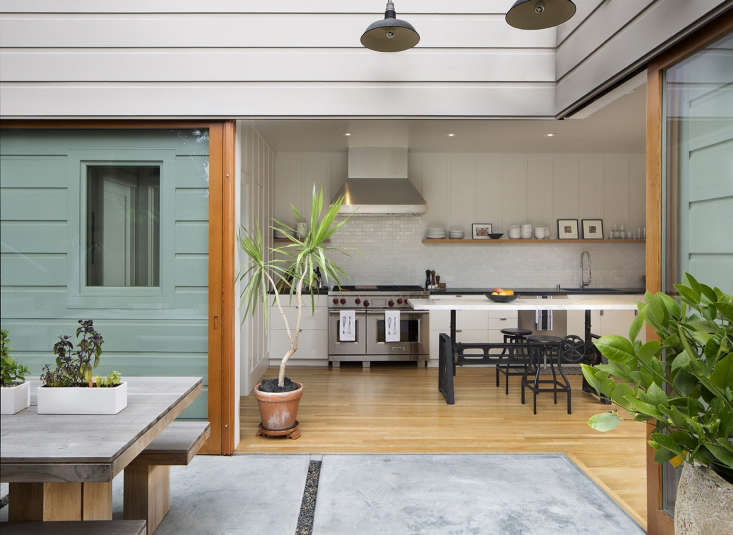 Some kitchen tasks are better left outdoors. Examples include cleaning fish and grilling meats which would foul up the house. That is why it is a good idea to have an outdoor kitchen that is easily accessible from the main kitchen. This expansion could also serve as an entertainment area for guests with the addition of garden chairs and tables. In many homes, a wide glass door separates the two for excellent visibility, better indoor lighting, modern elegance, and faster crossings.