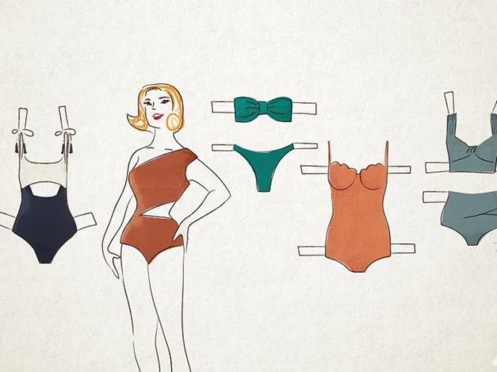 • An “oval” type of figure needs a swimsuit to add volume to the hips and emphasize the waist. One-piece swimsuits with nice cut-outs on the back, as well as tankinis, are best suited for this.