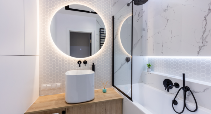 Upgrades that won’t break the bank can make an enormous impactful statement in your bathroom, such as installing a new backlit mirror or applying a fresh coat of paint. All these improvements can completely transform its aesthetic while making a significant difference in how it feels when using it every day.