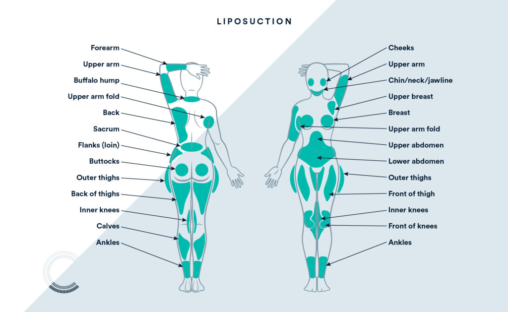 - Upper Arms – As we get older people have to deal with the skin on arms starting to sag and it’s very hard to get rid of. Liposuction can help with that!