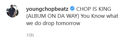 Chop also announced that tomorrow he’s dropping a new track, which imposes a question whether the only goal of making a racket on social media was for the sole purpose of self-promotion?